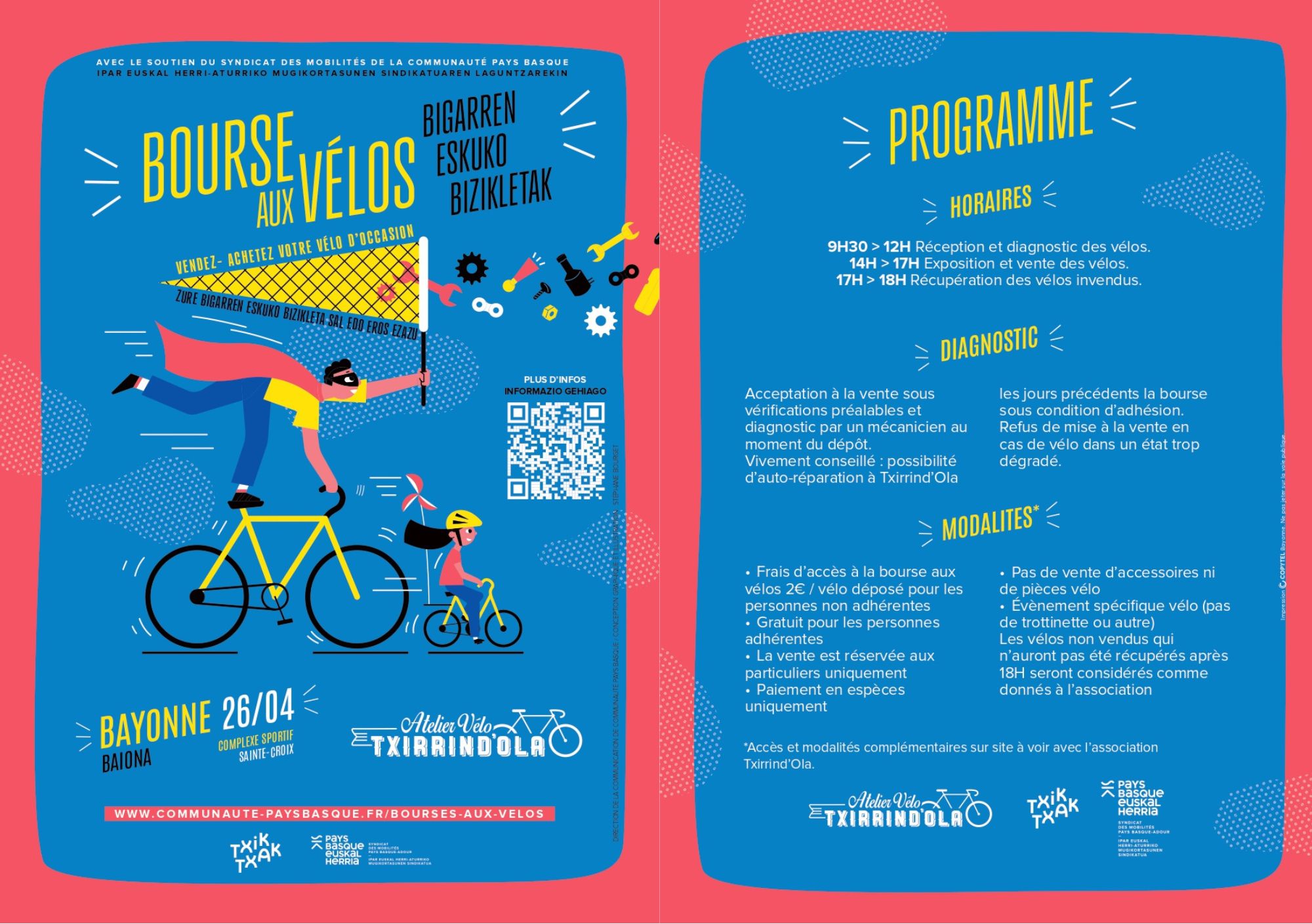 Pssst ! Envie de nous aider ? Nous recherchons des bénévoles pour l’organisation de la bourse aux vélos ! Contactez Alice : 07 82 04 91 78 / contact@txirrindola.org
